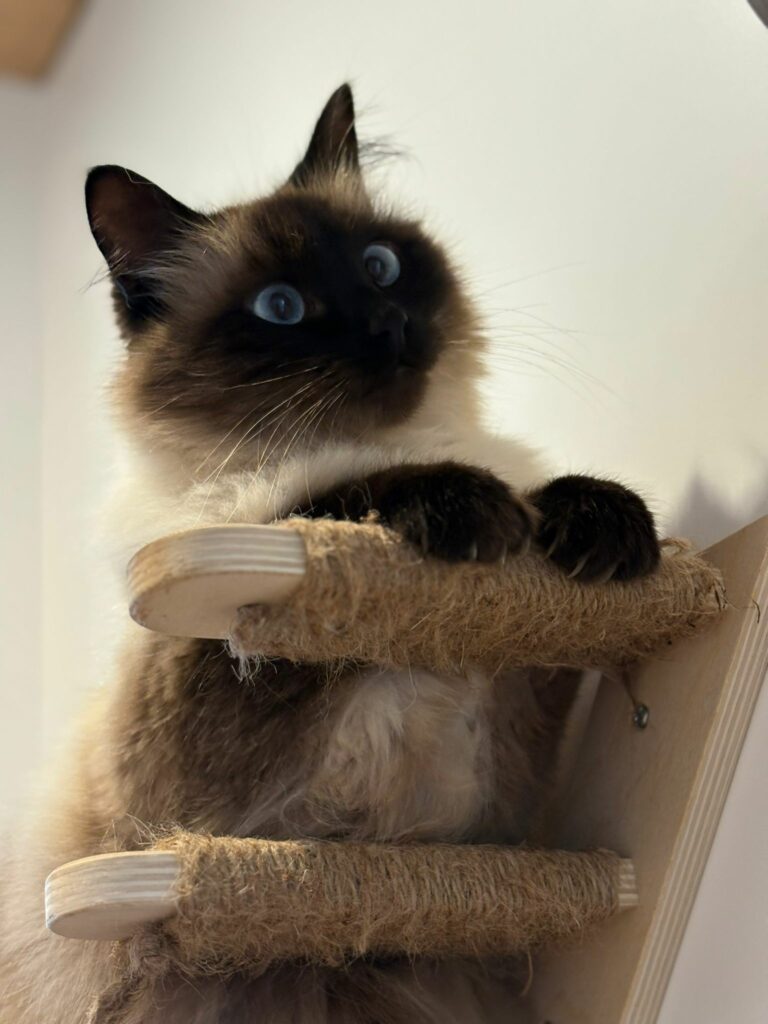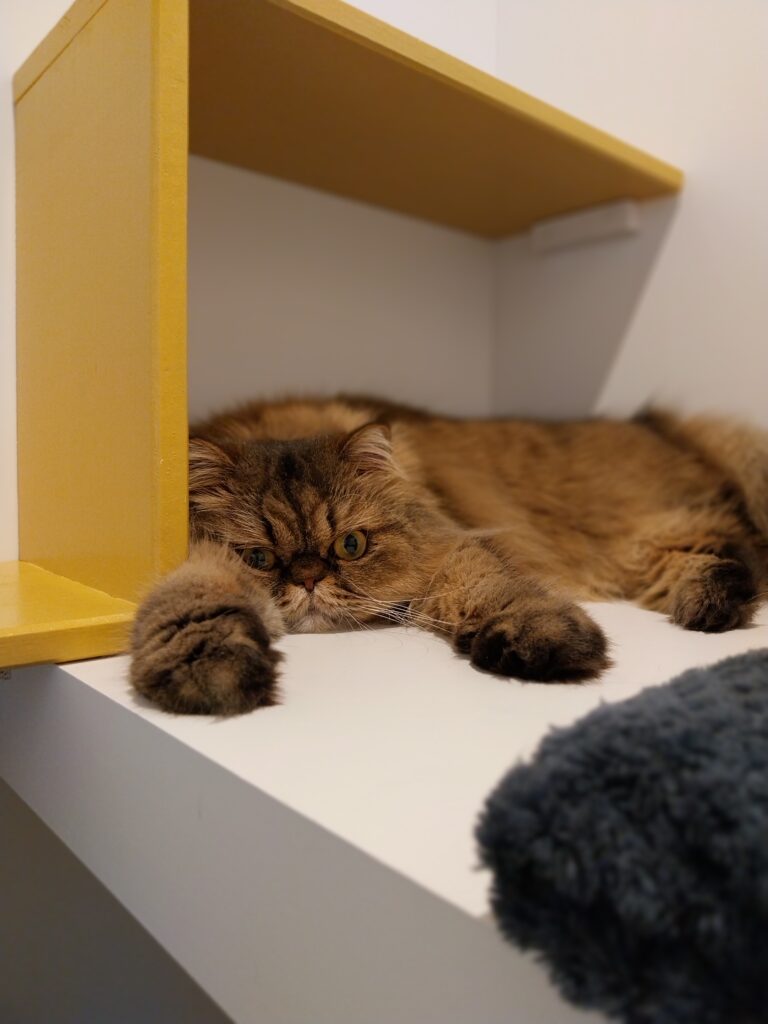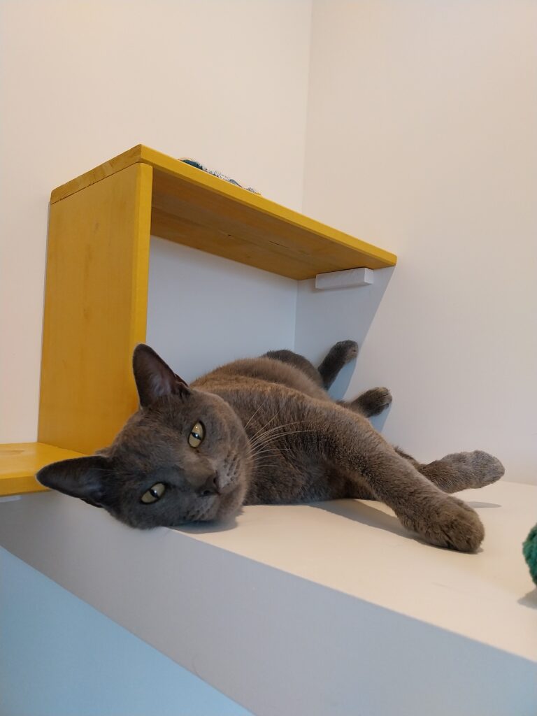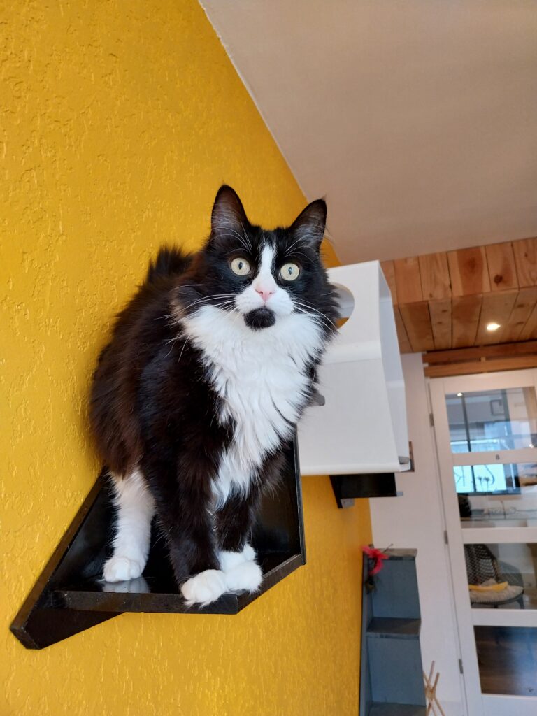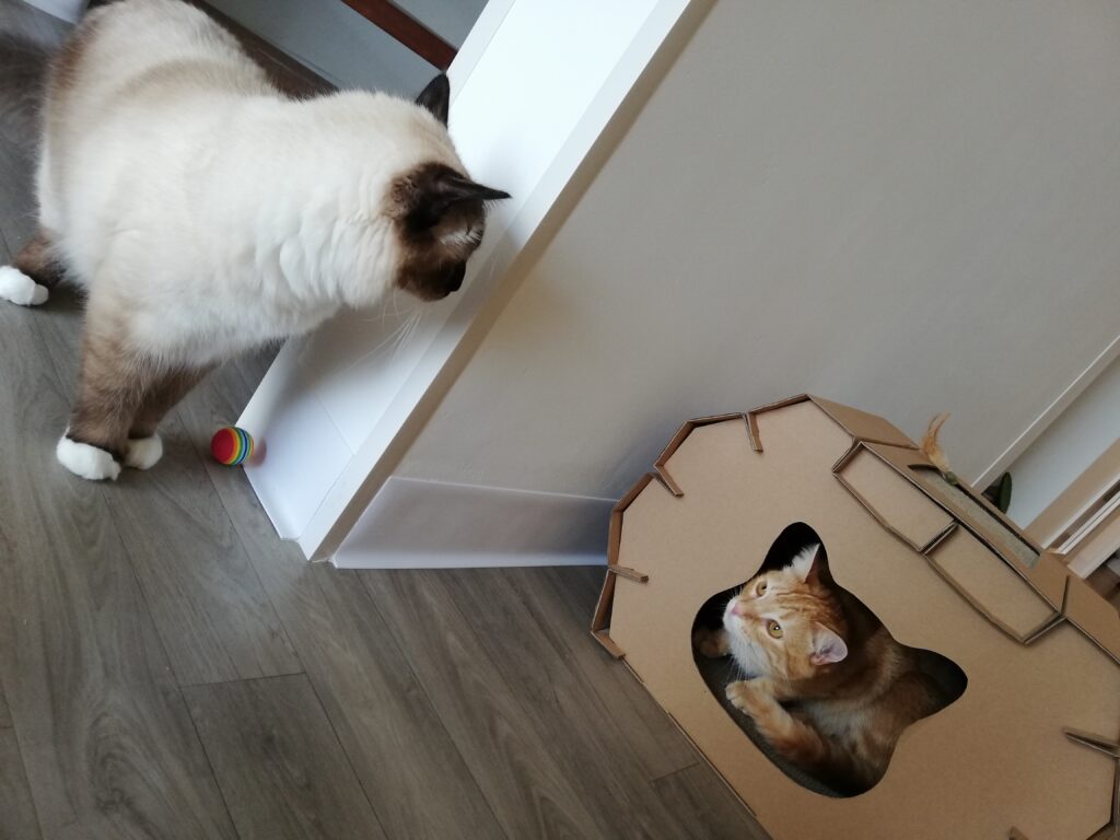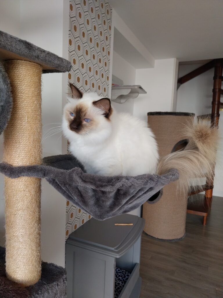 Deuxième étape : Lorsqu’il sera prêt à sortir de sa chambre, votre chat va découvrir les espaces communs et la salle de jeux mais tout SEUL dans un premier temps. Juste le temps d’explorer les lieux sans stress et toujours sous surveillance.